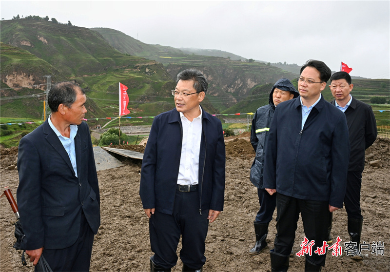 8月26日,省委副書記、省長(zhǎng)任振鶴在榆中縣調(diào)研災(zāi)后恢復(fù)重建工作。(記者盛學(xué)卿)